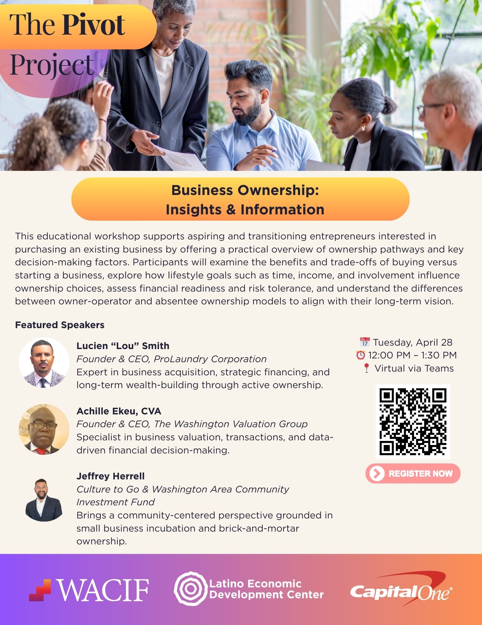 Hear directly from industry experts with real-world experience in acquisitions, valuation, and community-based business ownership: